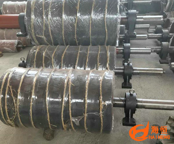 傳動滾筒表面可以裸露光鋼面,也可以附膠,如:人字形和菱形花紋橡膠覆面;小功率、小帶寬及環境干燥時可采用裸露光鋼面;人字形花紋膠面摩擦系數大,防滑性和排水性好,但有方向性;菱形膠面用于雙向運行的皮帶輸送機。